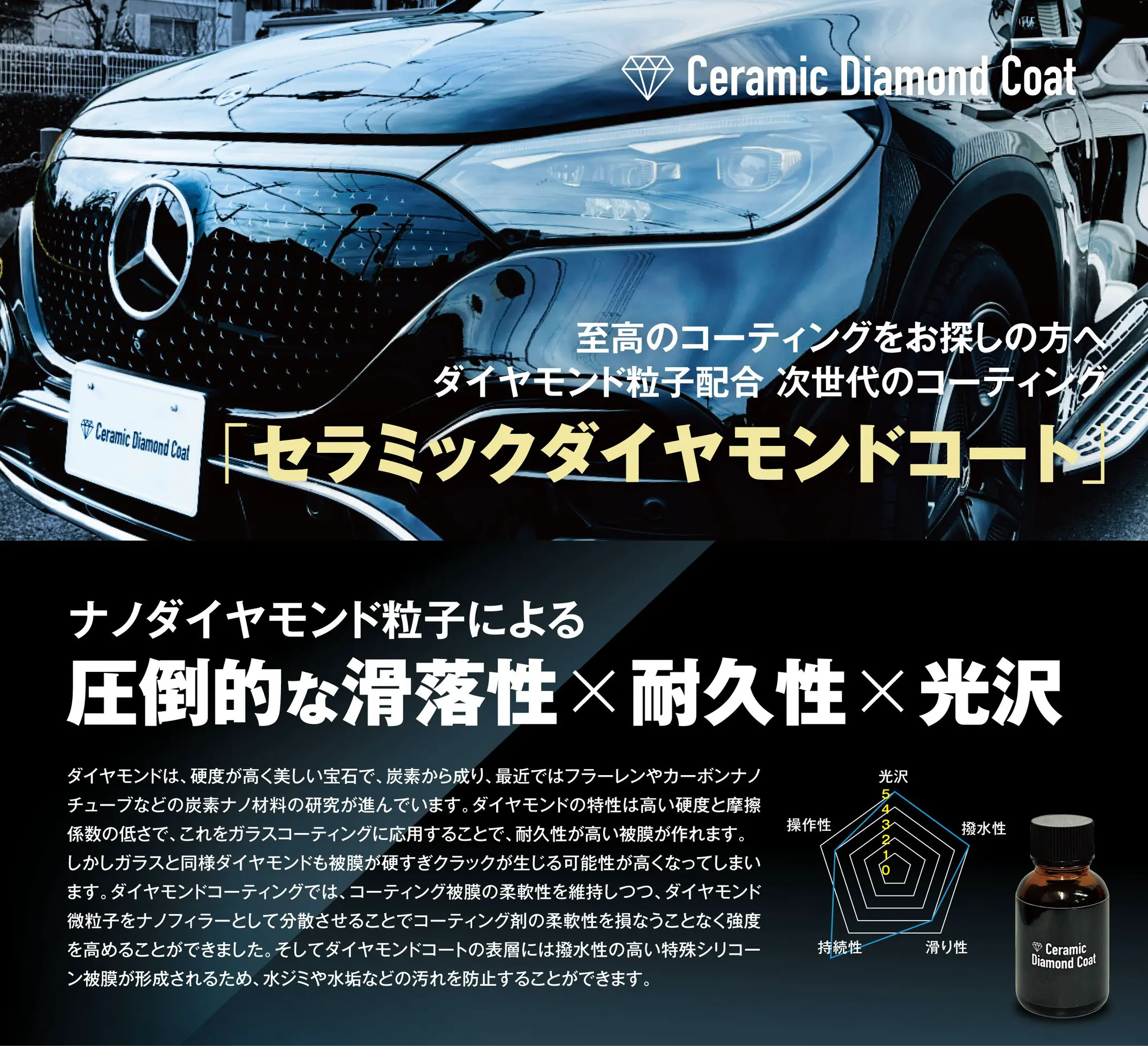 汚れなき愛車が長期間持続する革命的ガラス系疎水ボディコーティング